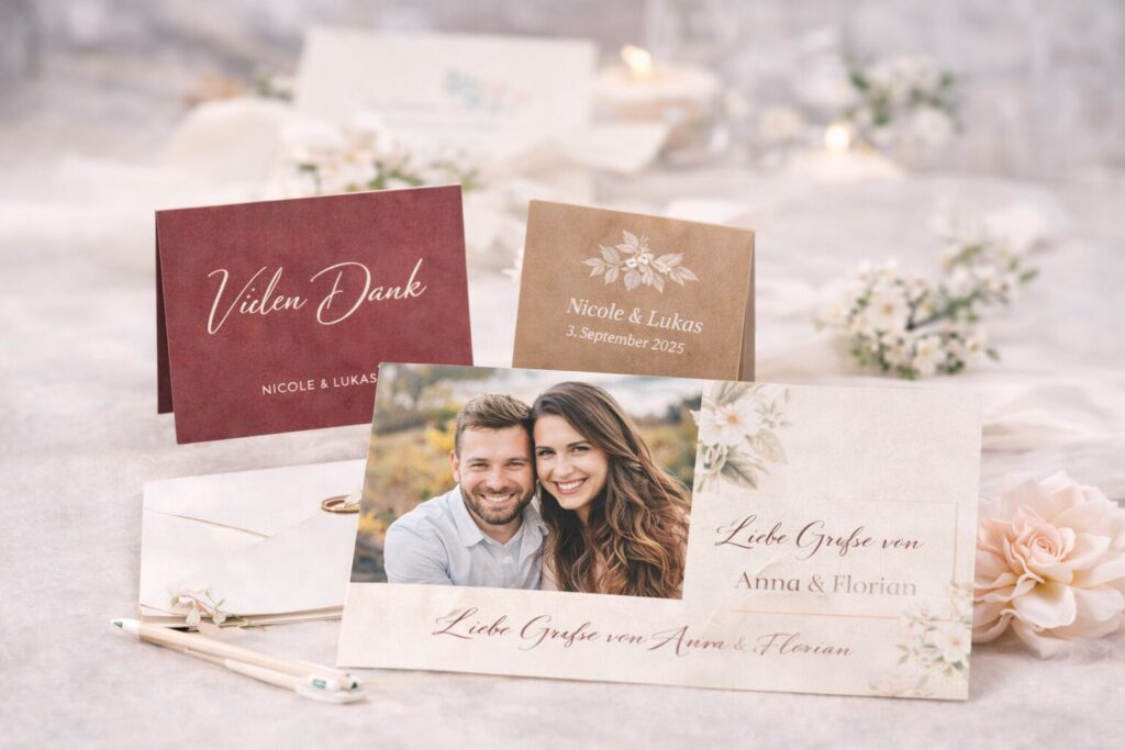 Nach der Hochzeit schaffen liebevoll gestaltete Karten bleibende Momente.